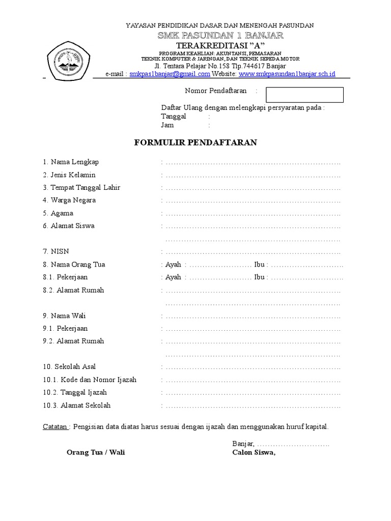 Contoh Formulir Pendaftaran Sekolah Smk Materi Pelajaran 7
