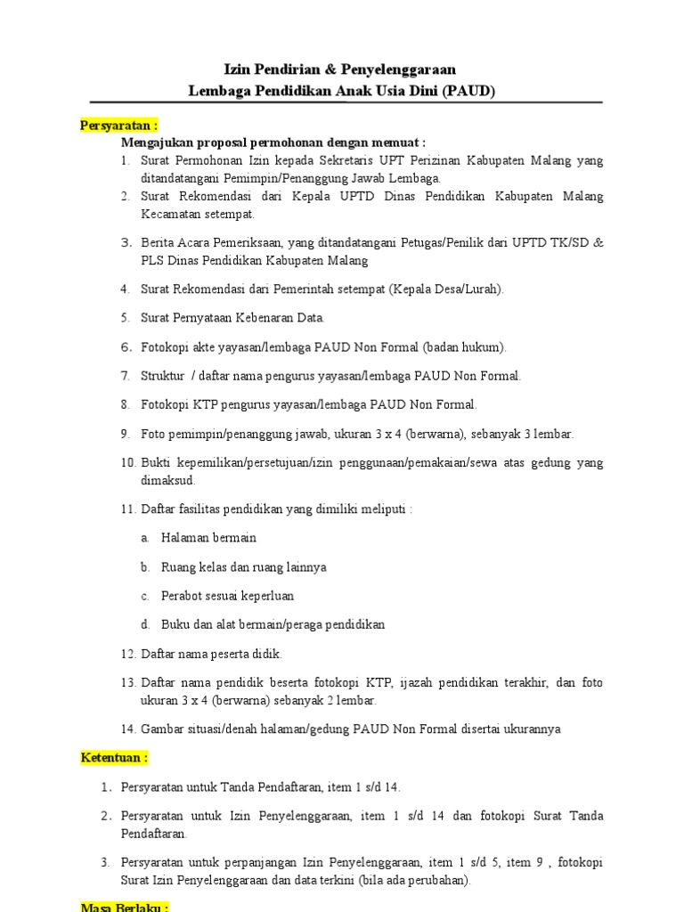 Download Contoh Ijin Operasional Lembaga Paud Format Doc Paud Jateng