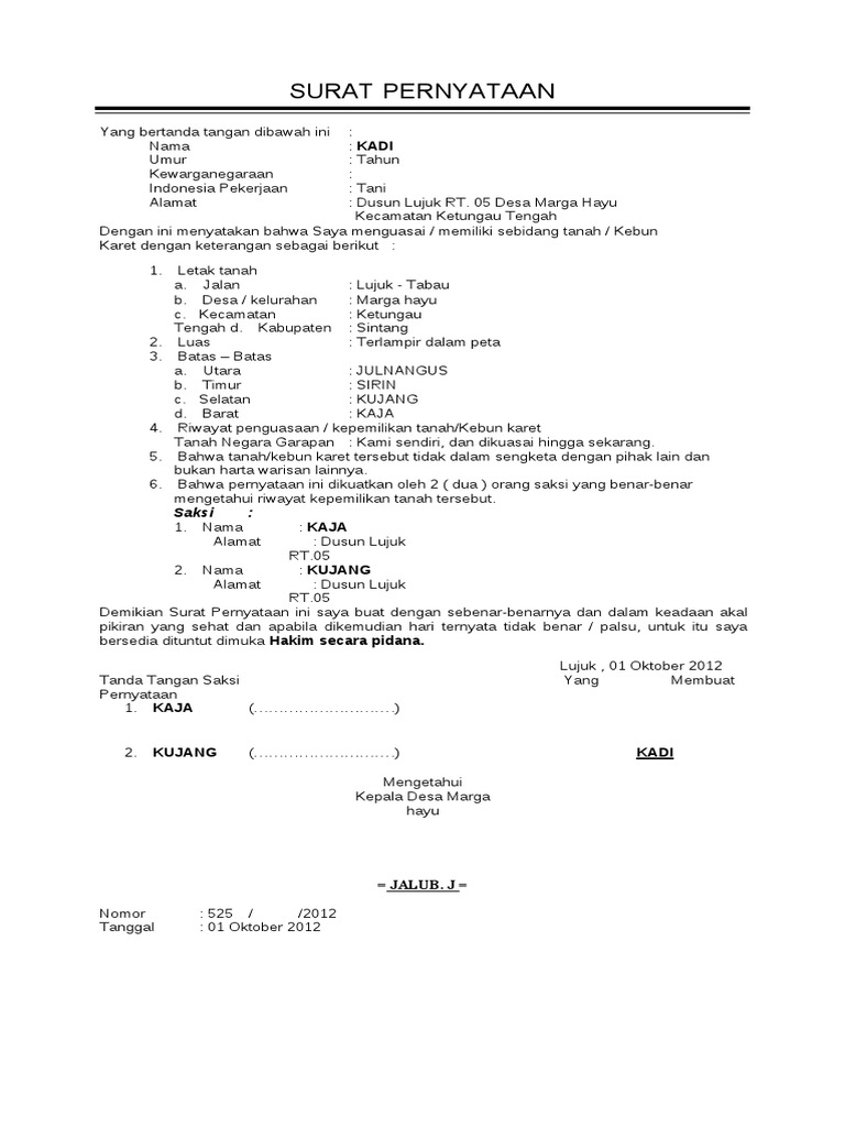 CONTOH SURAT KETERANGAN HIBAH TANAHdocx. N a m a. Dalam transaksi jual beli tanah diperlukan surat pernyataan yang berfungsi sebagai bukti tertulis tentang jual beli yang dilakukan.