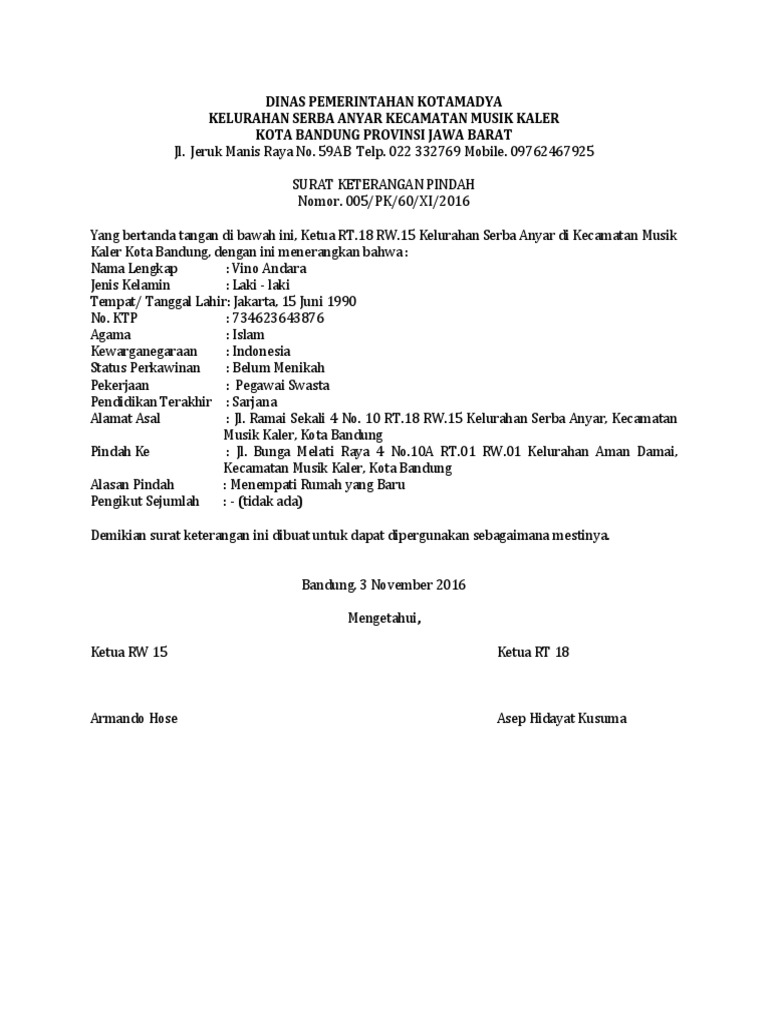Contoh Surat Keterangan Pindah Domisili Dari Rt Nusagates