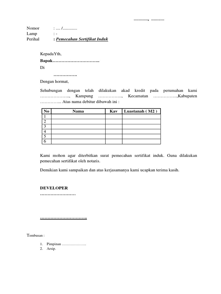 Surat Permohonan Pemecahan Sertifikat Tanah
